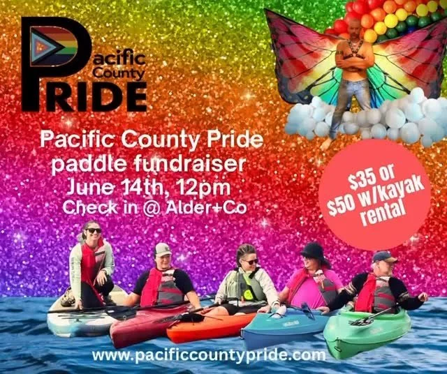 Join us Saturday, June 27, from 11am to 2pm in Long Beach, WA, for a drag brunch supporting Pacific County Voices Uniting. Enjoy performances by Sativa Queen, brunch by Barbe-Queen, Drag Bingo, trivia, and conversations with local elected officials.