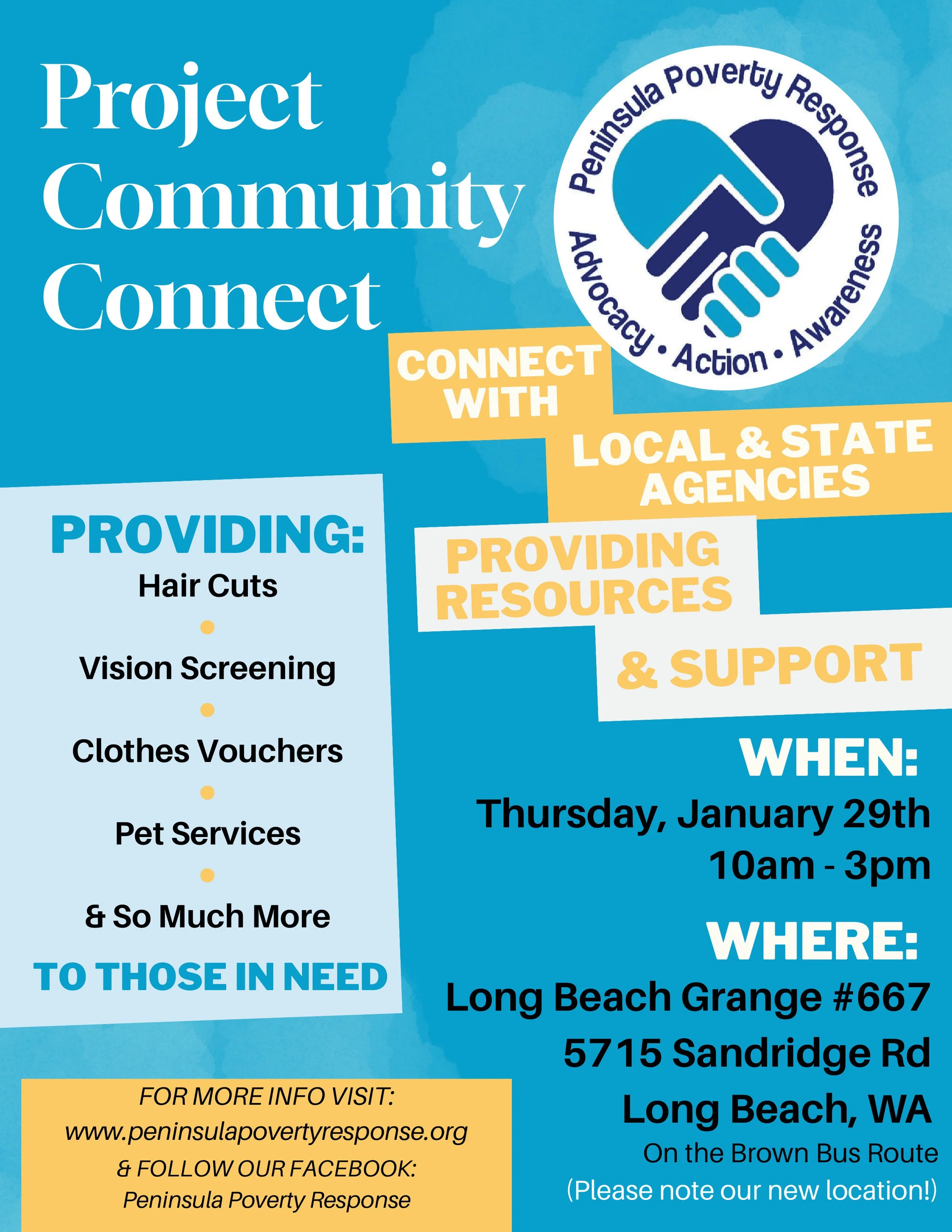Free haircuts, vision screenings, clothing vouchers, insurance and housing services, and more: www.peninsulapovertyresponse.org
