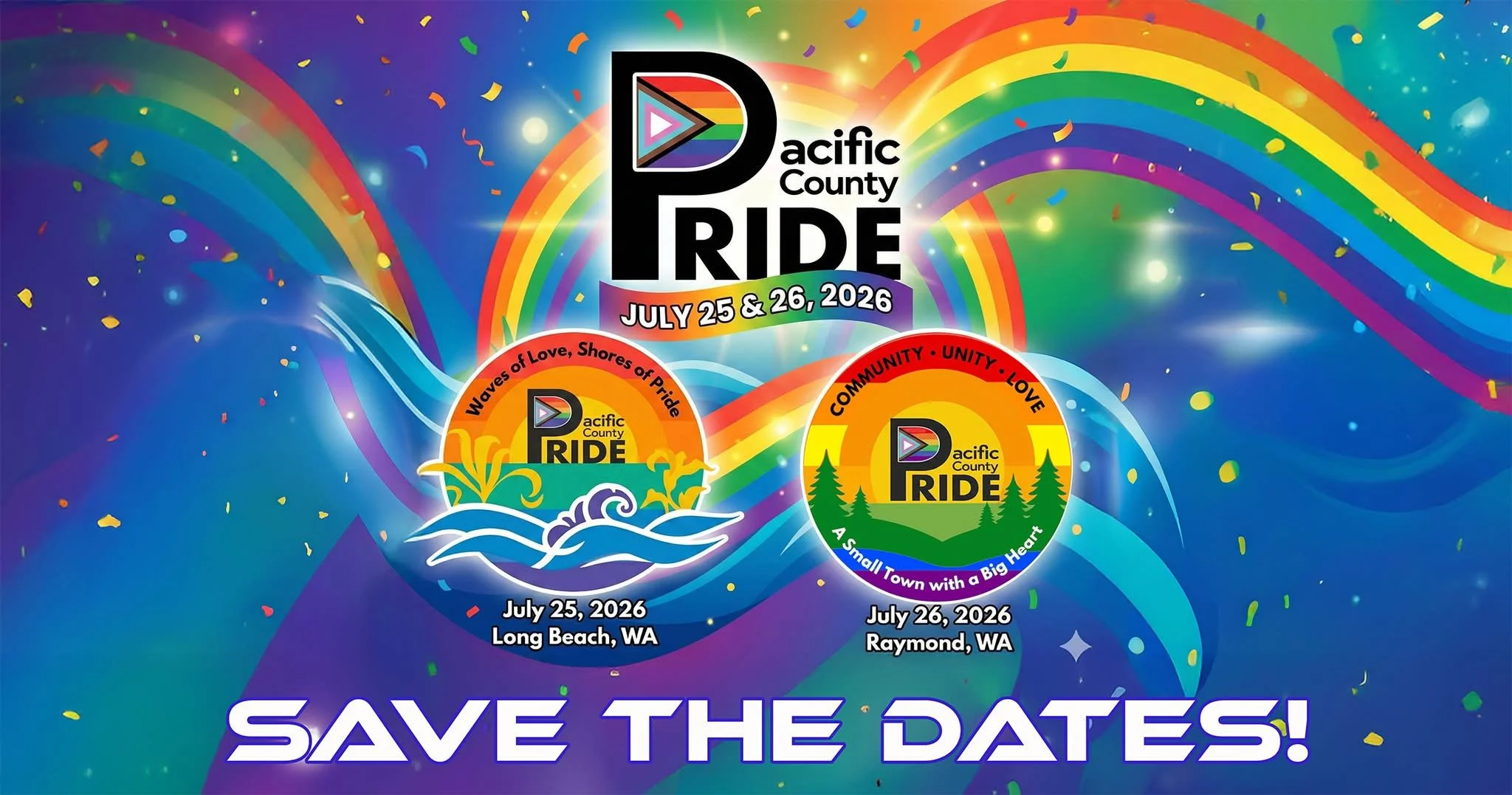 Back to All Events Pacific County Pride Friday, July 24, 2026 12:00 PM Sunday, July 26, 2026 6:30 PM Google Calendar ICS
